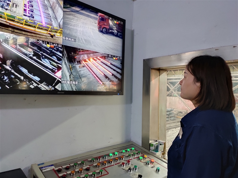 主控工陳小育一只手拿著訊響器播報(bào)中包溫度,另一只手正在認(rèn)真書寫中包溫度。五分鐘一次的播報(bào)溫度,十分鐘一次的記錄書寫,她就這樣一直忙碌著。推鋼工吉銳琴站在操作臺(tái)前,一會(huì)兒抬頭看看顯示器,一會(huì)兒看看臺(tái)下運(yùn)行的鑄坯,手指在按鈕上不停地“舞蹈”。看起來,似乎主控工和推鋼工的工作都很輕松、簡單。實(shí)則不然,這完全考驗(yàn)她們的反應(yīng)速度、眼力、手力、心理承受能力等。她們堅(jiān)持將簡單的事情重復(fù)做,重復(fù)的事情用心做,無怨無悔,用瘦弱的身體挑起了生產(chǎn)的重?fù)?dān),用實(shí)際行動(dòng)詮釋著巾幗擔(dān)當(dāng)。