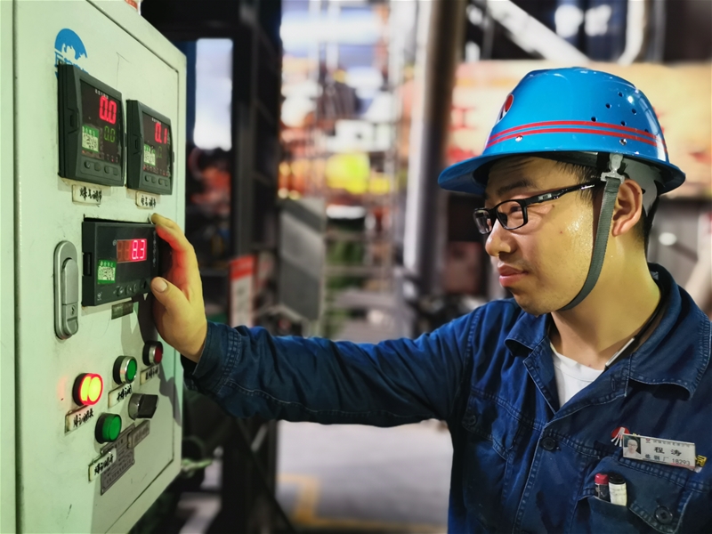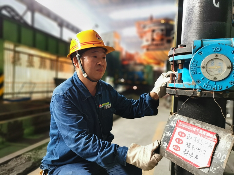 圖三:煉鋼廠連二作業(yè)區(qū)安全員張保銀正在檢查煤氣設備,現場的溫度持續(xù)攀升,汗珠順著他的臉頰滾落,但是他始終牢記自己的職責與使命,不放過任何一個細節(jié),用實 際行動踐行著自己的安全誓言。