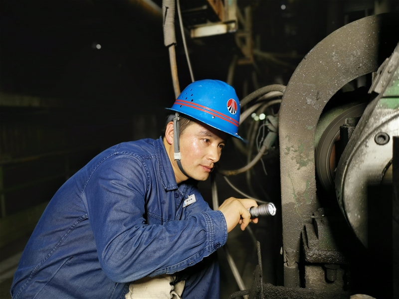 圖十:煉鋼廠連二作業(yè)區(qū)安檢員郭云峰正在對連鑄振動系統(tǒng)進行點檢。大負荷照明燈的強光打在他的臉龐上,他一個點一個點地仔細檢查著,一顆顆滾落的汗珠里,包裹的都是他對設備的精心。