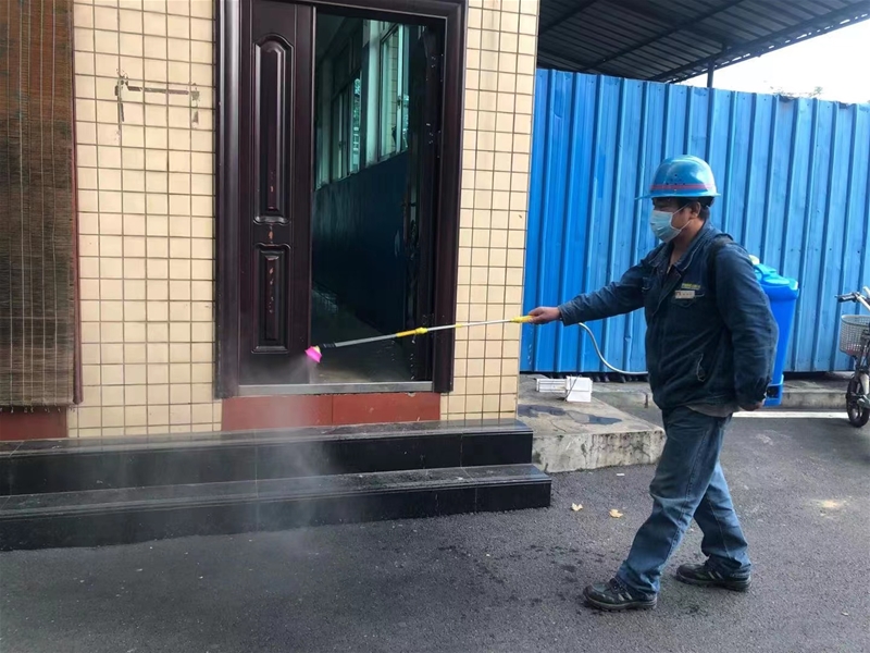 “呼哧呼哧……”一陣像是打氣的聲音讓筆者轉(zhuǎn)移了視線,原來是部門維修工唐朋軍在給辦公區(qū)域做消毒殺菌噴灑工作,藍(lán)色的藥桶浸濕了他的后背,濃濃的藥味嗆得他直打噴嚏,“師傅,咱就不打藥了,偶爾偷個懶又沒人知道……”“做好疫情防控是我們義不容辭的責(zé)任,主動作為、死扛到底是我們做好疫情防控的首要條件。”鏗鏘有力的回答,讓筆者震撼!作為一名合格的老黨員,他用自己的執(zhí)著表達著鋼鐵人的扛死肩。